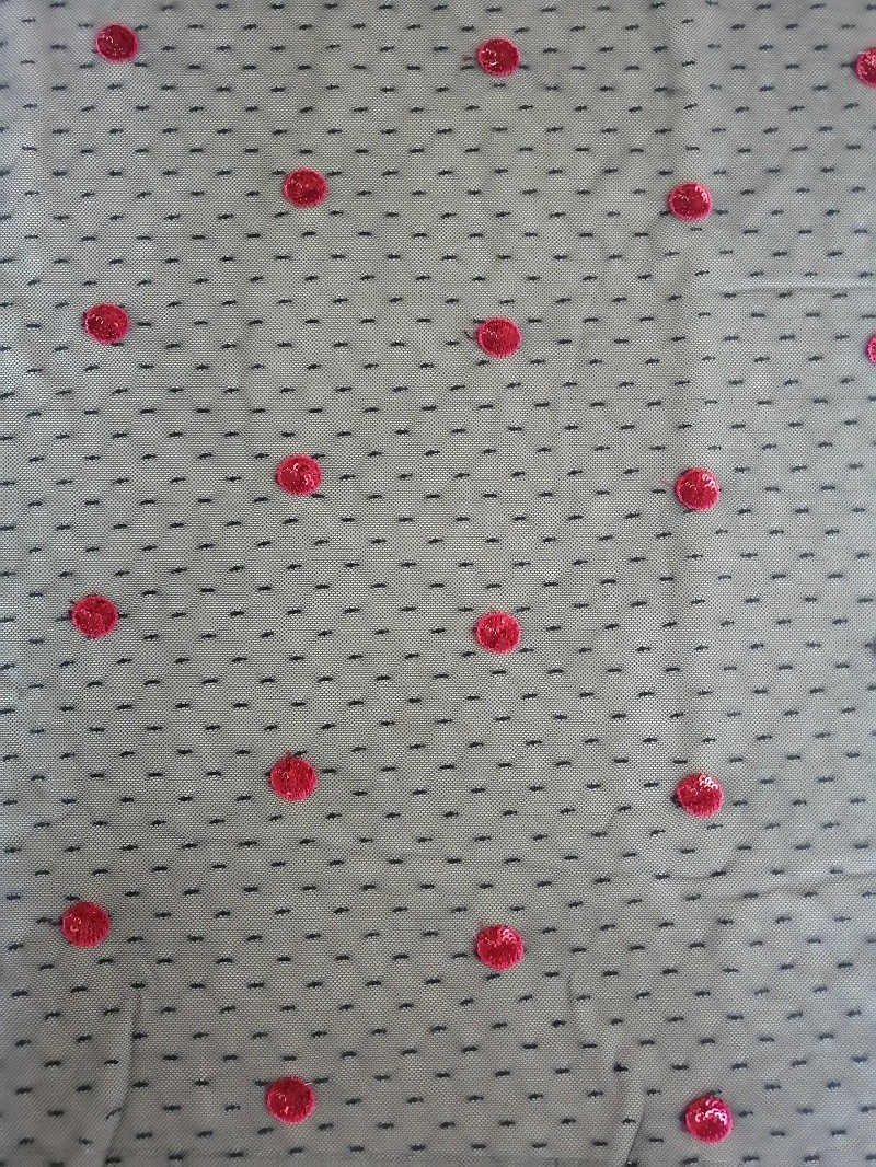 Làm nổi bật: | Vải thêu chấm bi màu đỏ đen,Vải may trang phục ban ngày Vải chấm bi chấm bi,Vải thêu đính nơ thân thiện với làn da |