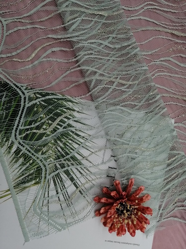 Làm nổi bật: | Vải ren kim loại Chantilly Pháp,Vải ren lông mi Chantilly Pháp,Vải ren kim loại 94g / m |