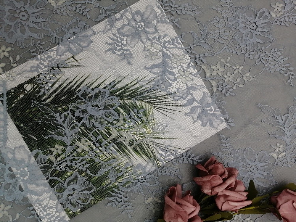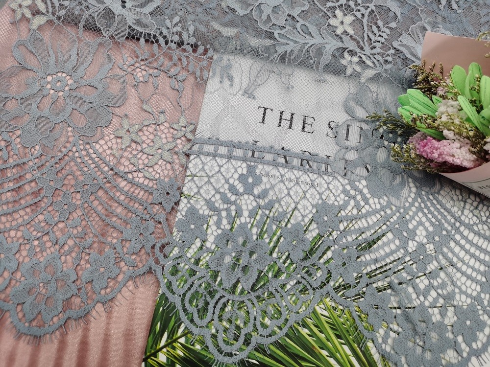 | Làm nổi bật: | Vải ren lông mi màu xám 145CM,Vải ren viền con sò 145CM,Vải ren cạnh vỏ sò 100yards |