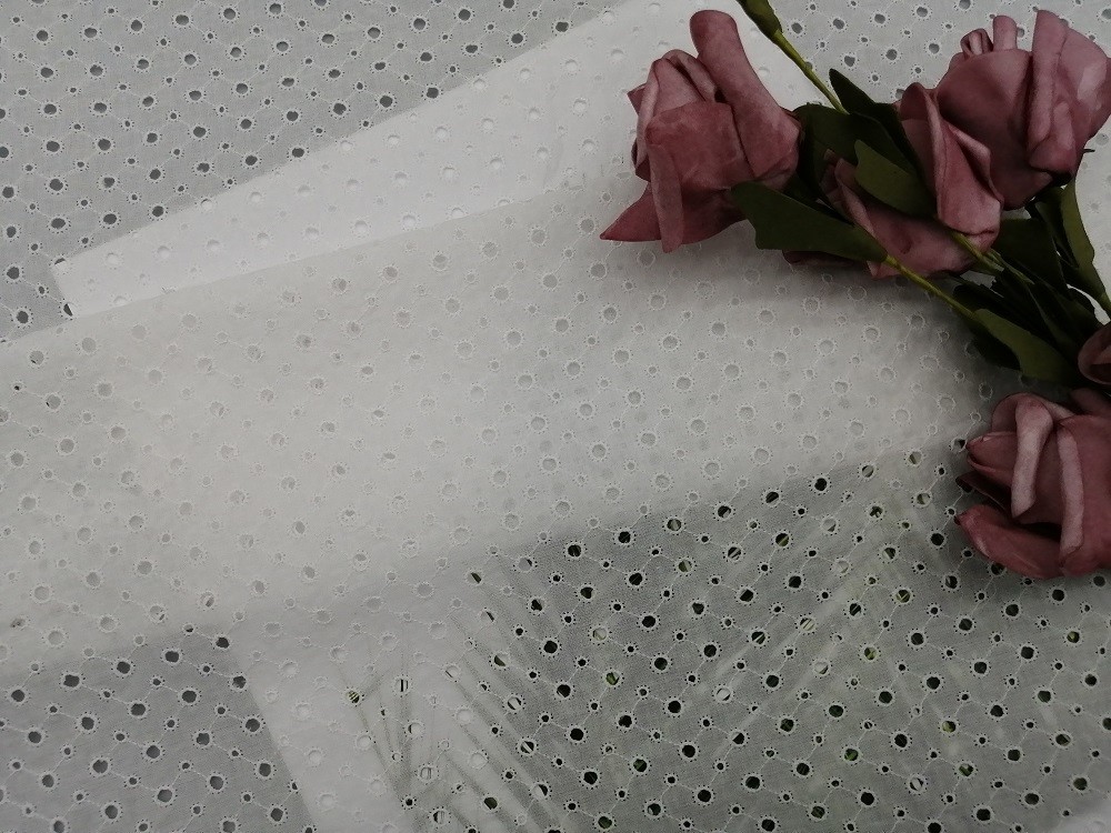 Sakura Brand Cherry Blossom Thread thêu Eyelet vải cho trang phục dạ hội trang phục phụ nữ Váy nữ trang phục cô gái nhỏ có thể đáp ứng yêu cầu của Tiêu chuẩn OEKO-Tex 100.