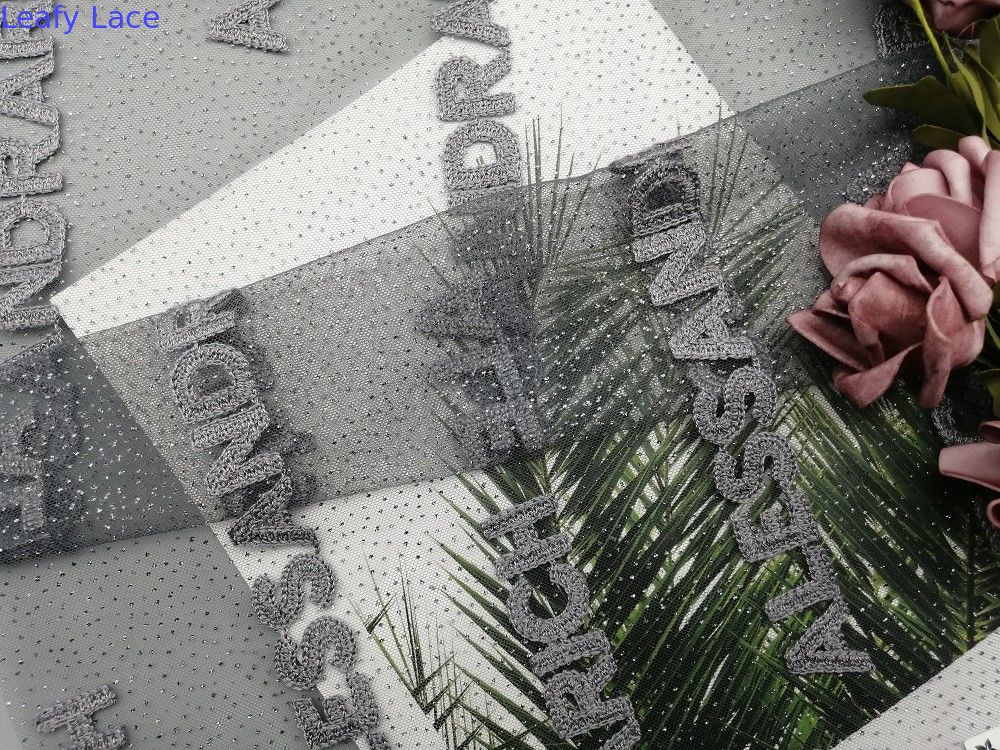 Xám Lấp lánh Lá Thêu Lá Vải Tuyn Lưới Vải In Lá Cho Trang Phục Buổi Tối Váy Nữ Trang Trí Váy Cô Gái thích hợp cho Trang Phục Phụ Nữ, Váy, Trang phục cho bé gái, Đồ dệt ở nhà, Rèm, Đồ giường, Trang phục, Mũ, Áo cưới, Áo cánh, v.v.