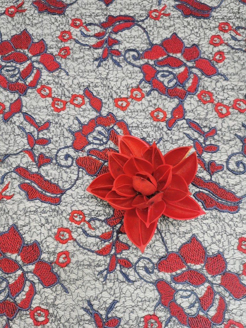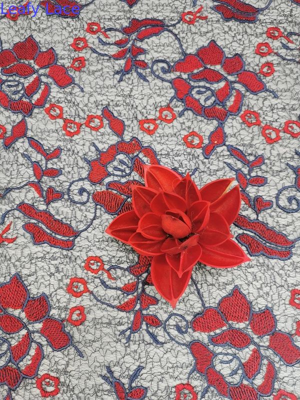 -Màu đỏ thêu hoa lớn màu thêu móc vải ren Váy ren nữcđáp ứng yêu cầu của Tiêu chuẩn 100 OEKO-Tex.