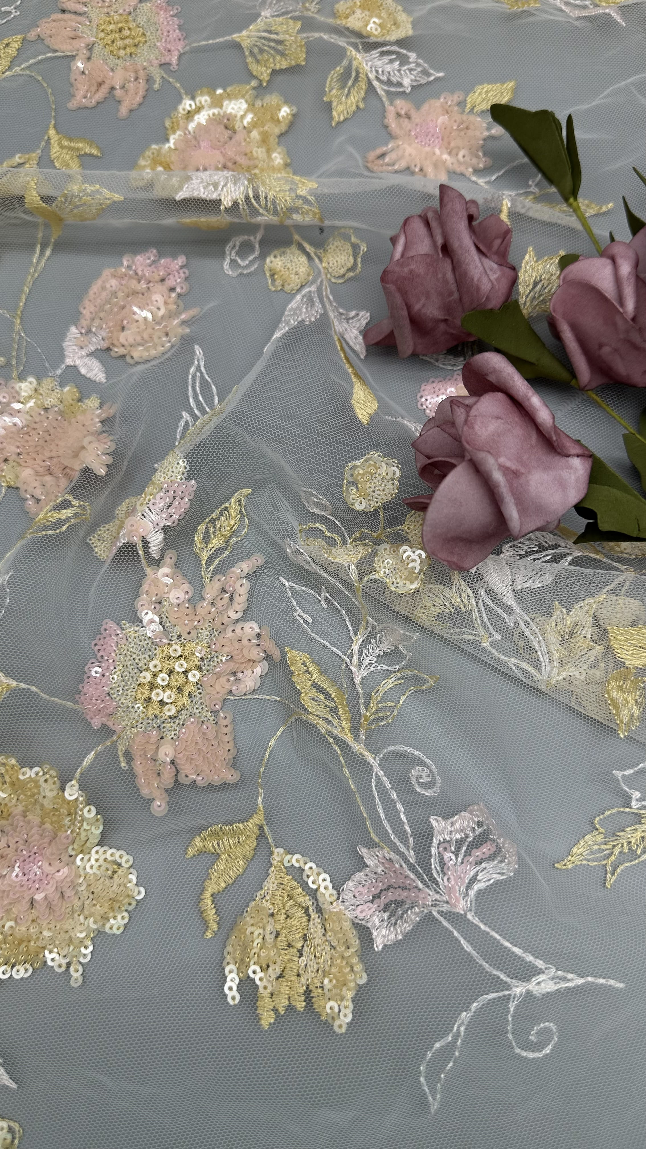 Tên sản phẩm: | Ren lá | Vật liệu: | Sequin/Lace/thêu |