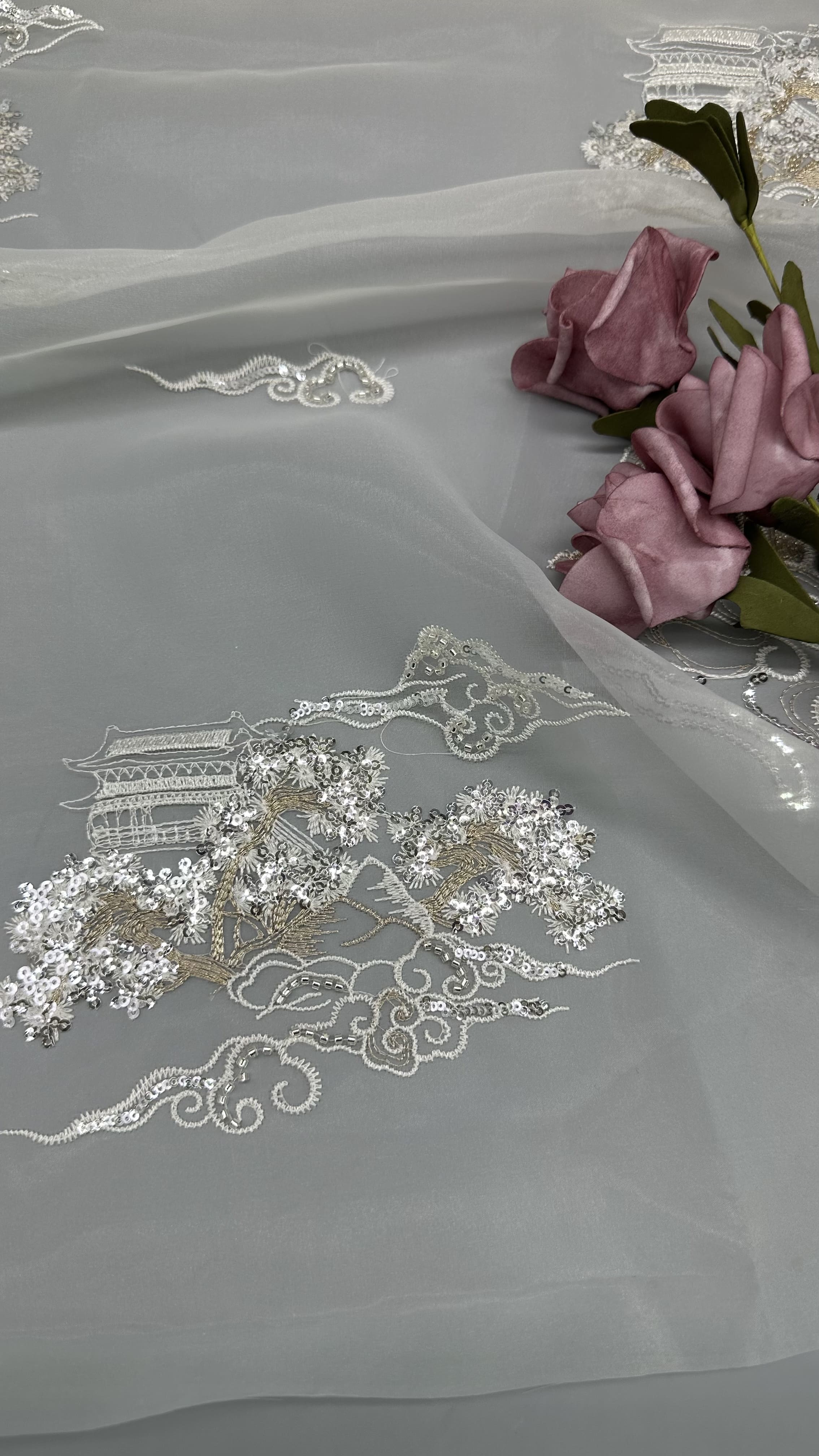 Tên sản phẩm: | Ren lá | Vật liệu: | Sequin/Lace/thêu |