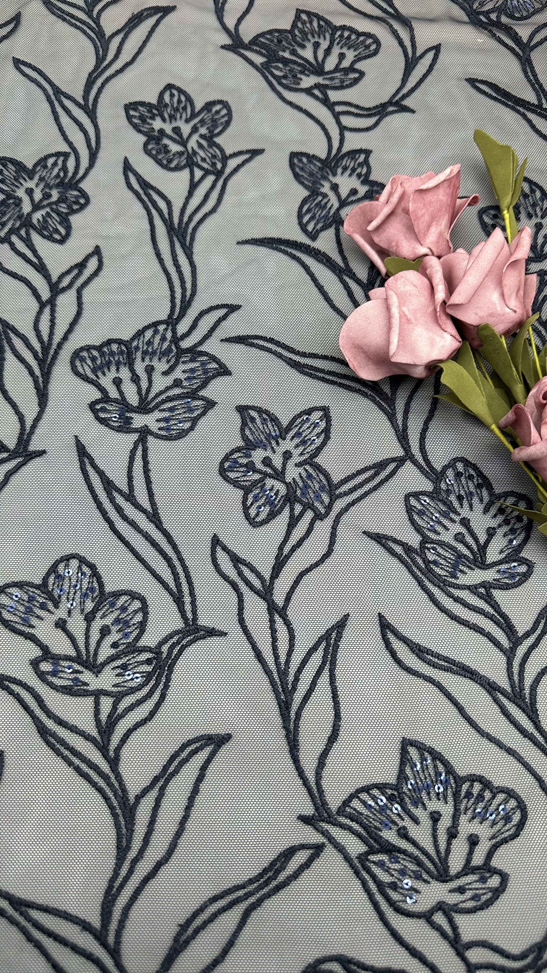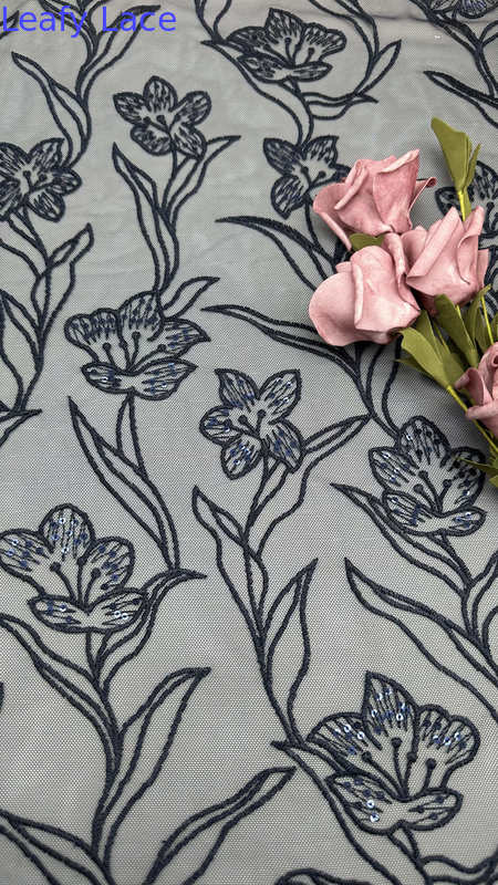 Vải thêu mỏng với các mô hình lá tinh tế là một lựa chọn phổ biến cho váy cưới và tiệc tùng, cung cấp sự thanh lịch, kết cấu và chi tiết phức tạp.Công nghệ đằng sau sản xuất của nó liên quan đến sự pha trộn của nghề thủ công truyền thống và các đổi mới dệt may hiện đại.
