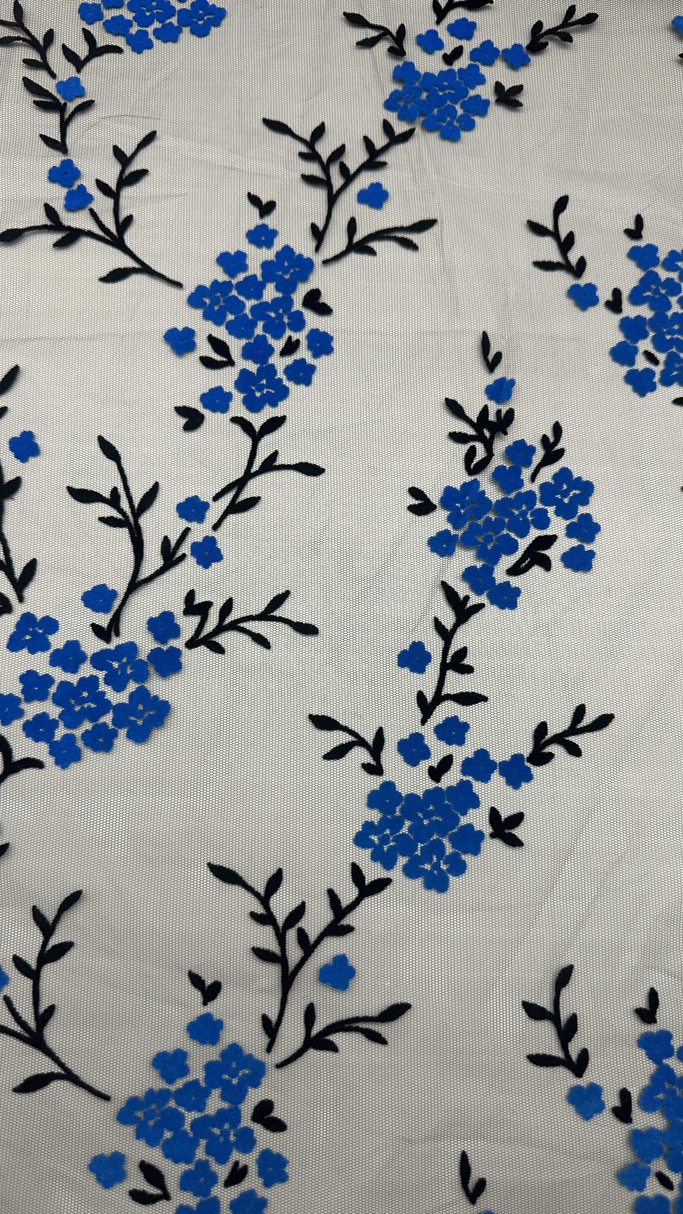 | Làm nổi bật: | blue wintersweet flocked mesh fabric,customized leafy party fabric,elegant flocked mesh fabric |