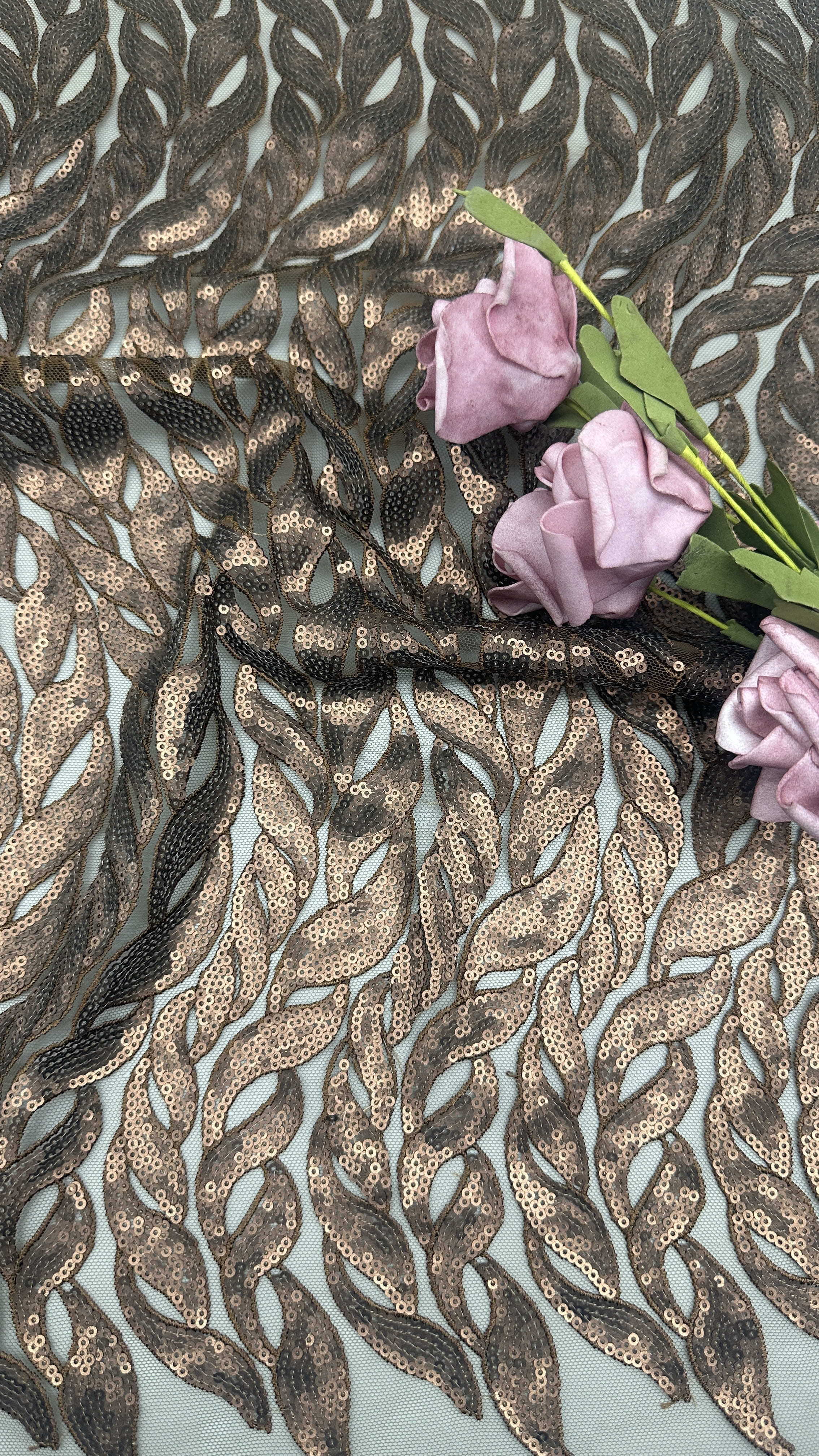 | Làm nổi bật: | sequin embroidered fabric for gown,luxury sea grass lace fabric,customized sequin embroidered lace |